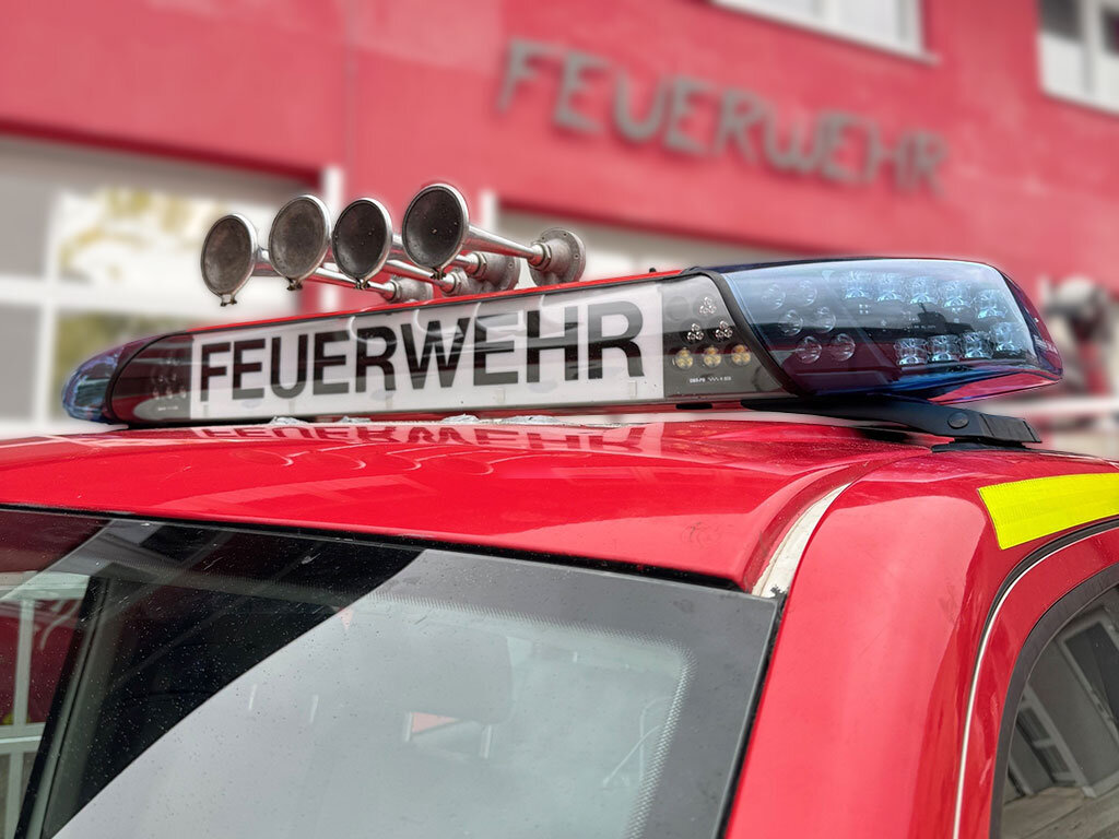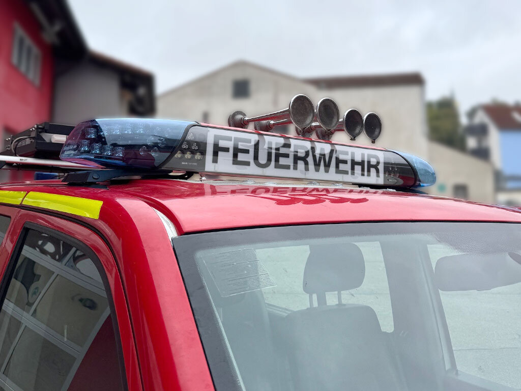 Der VW T5 der Feuerwehr Stadt Mainburg wurde mit einem Blaulichtbalken ausgestattet.